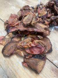 De lamsballen zijn gesneden in rondjes en puur natuurlijk gedroogd.