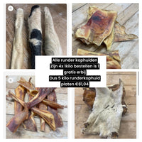 Bestel 4 Kilo: Wanneer je 4 kilo runderkophuiden bestelt, voegen wij er gratis 1 kilo naar keuze aan toe.