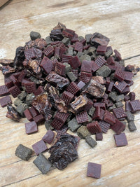 Variatie: De mix biedt een breed scala aan smaken en texturen die helpen om je hond gemotiveerd te houden tijdens de training.