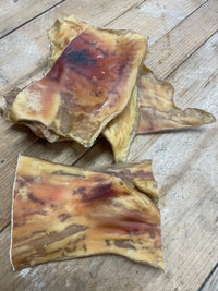 De runderkophuid platen zijn in een mooie maat gezaagd van 15x15cm en dus voor alle honden geschikt die erg graag kauwen.