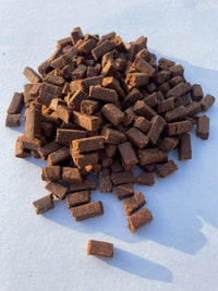 Wij hebben deze prachtige vleestrainers in diverse smaken. Een gezond en verantwoord trainertje die hond zal watertanden.